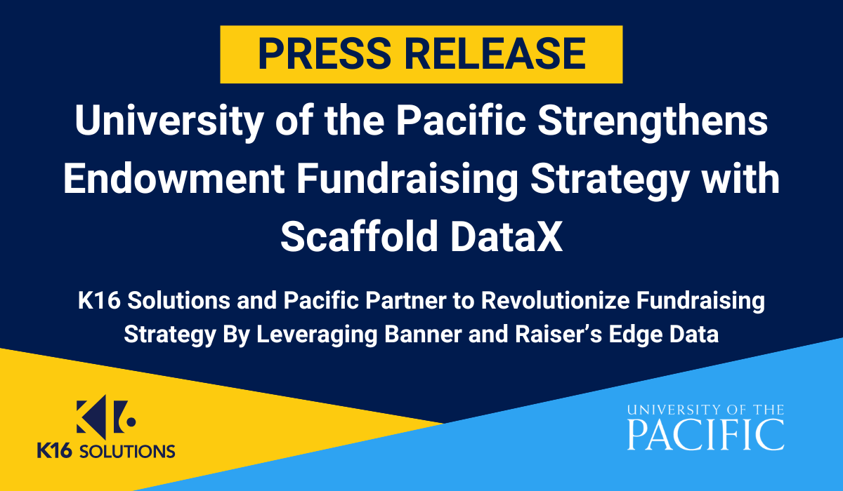 K16 Solutions Inc., the leader in automated data management and warehousing, announced today that University of the Pacific (Pacific) has selected its flagship SaaS solution, Scaffold DataX, to power a more data-informed endowment and fundraising strategy.